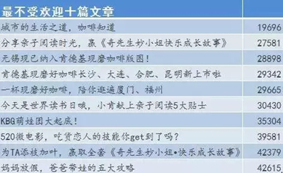 近半年来,肯德基微信上阅读和点赞最多的十篇文章中大部分都是促销优惠活动信息,偶尔想玩点别的,用户也并不买账,如下图: